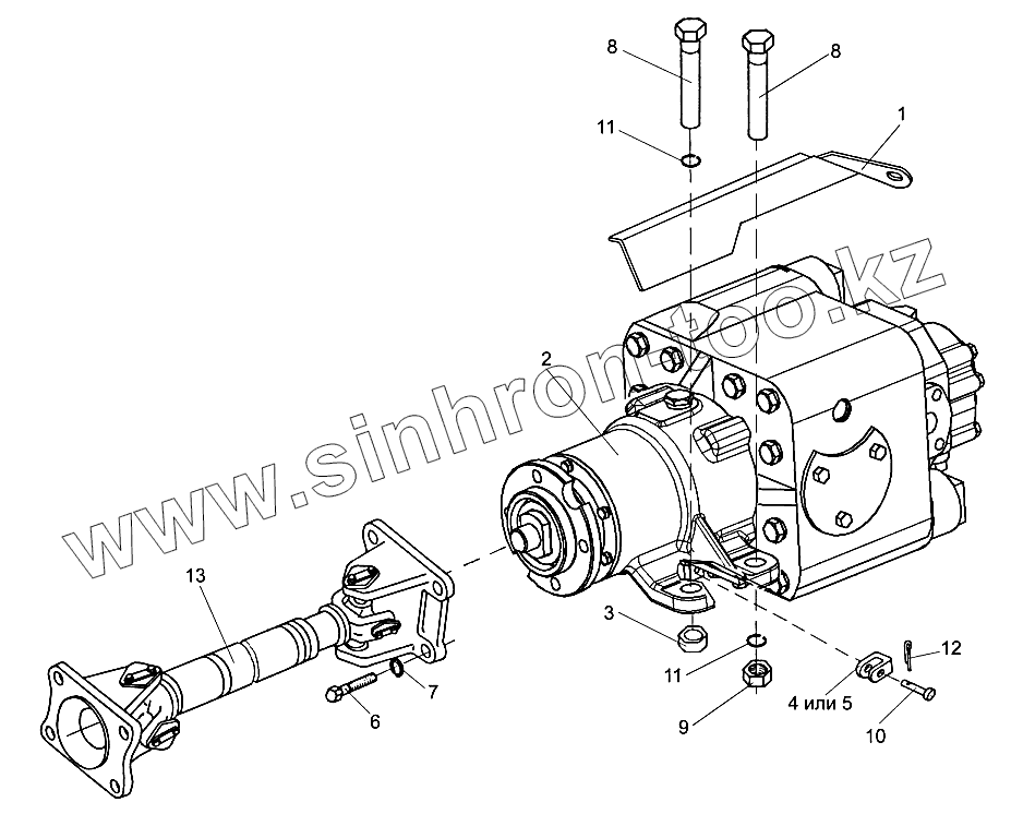 Каталог запасных частей к технике: Гомсельмаш УЭС-280. Установка привода гидронасоса УЭС 1200000А-01