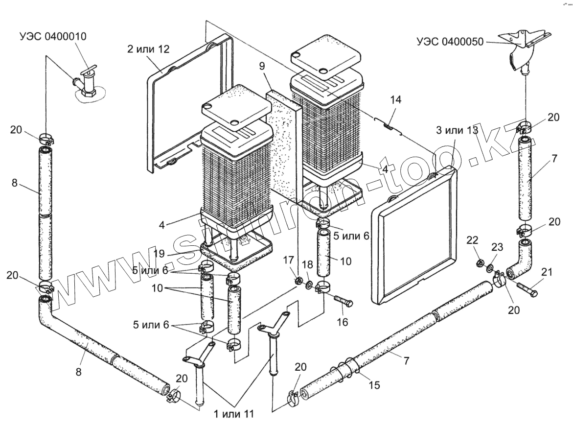 Каталог запасных частей к технике: Гомсельмаш УЭС-2-250А. Блок радиаторов УЭС 0301430