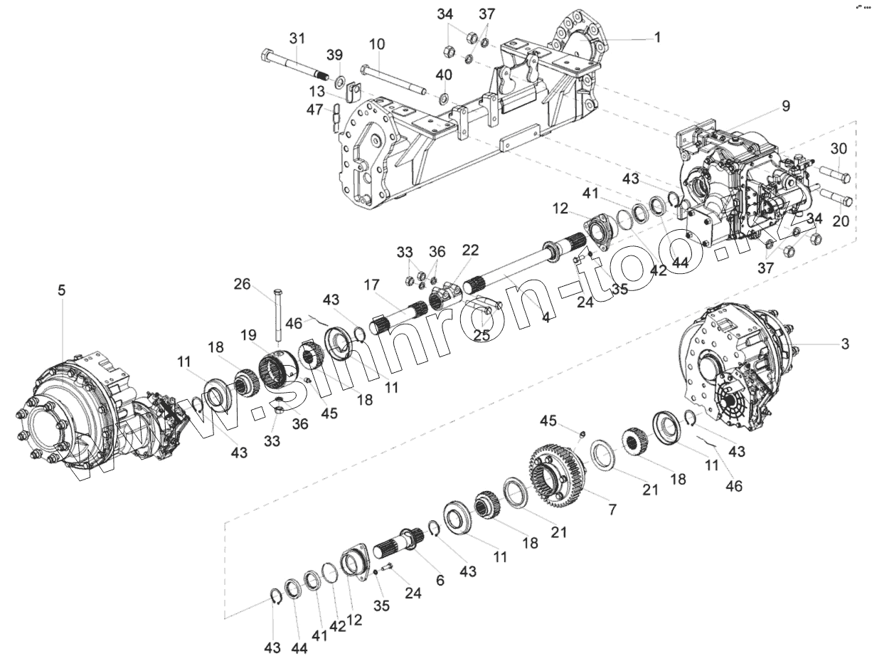 Каталог запасных частей к технике: Гомсельмаш УЭС-2-250А. Мост ведущий УЭС-7-0107000