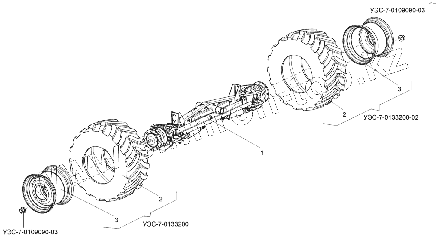 Каталог запасных частей к технике: Гомсельмаш УЭС-2-250А. Установка колес управляемого ведущего моста