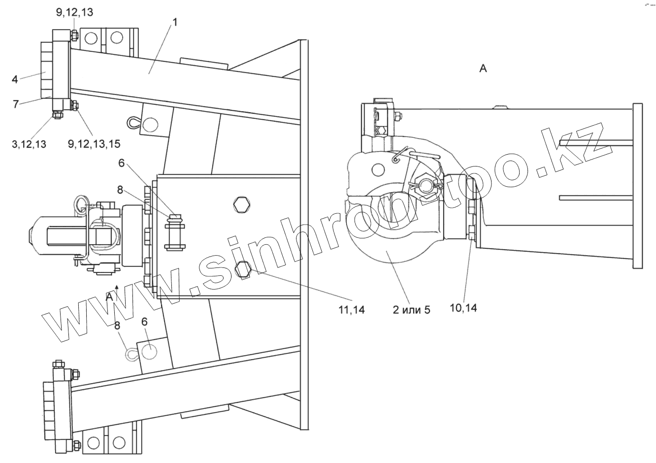 Каталог запасных частей к технике: Гомсельмаш УЭС-2-250А. Устройство тягово-сцепное УЭС-7-0003010