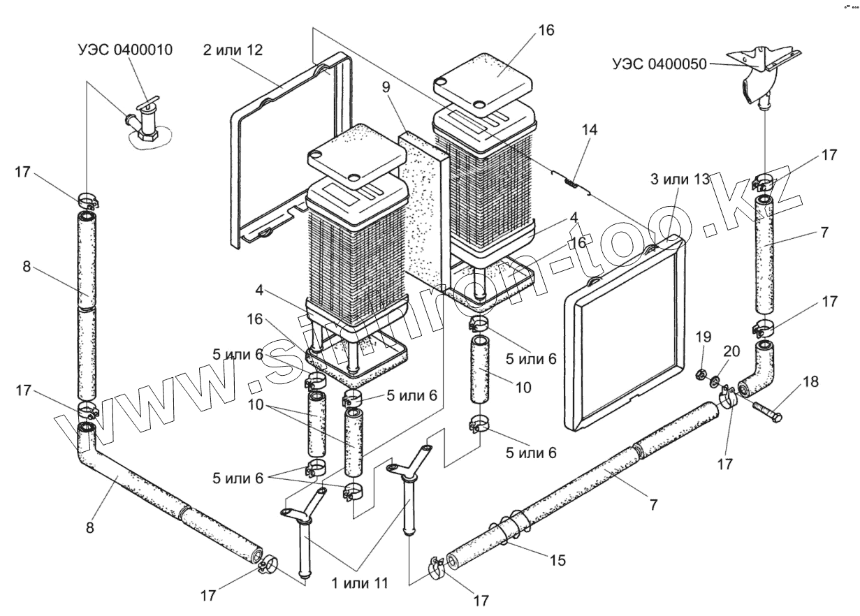 Каталог запасных частей к технике: Гомсельмаш УЭС-2-280А. Блок радиаторов УЭС 0301430