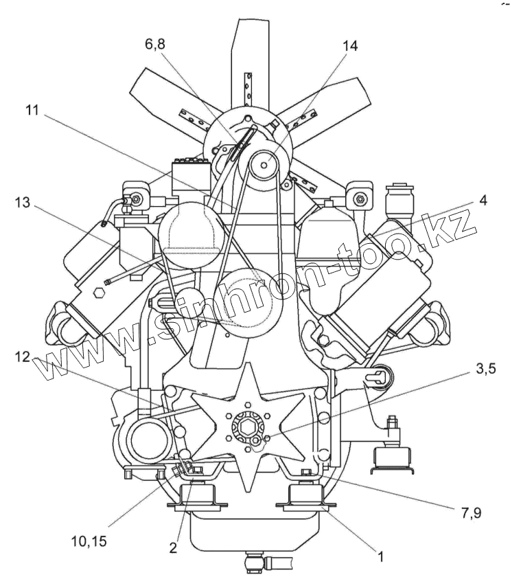 Каталог запасных частей к технике: Гомсельмаш УЭС-2-280А. Двигатель УЭС-6-0400360 (вид спереди)