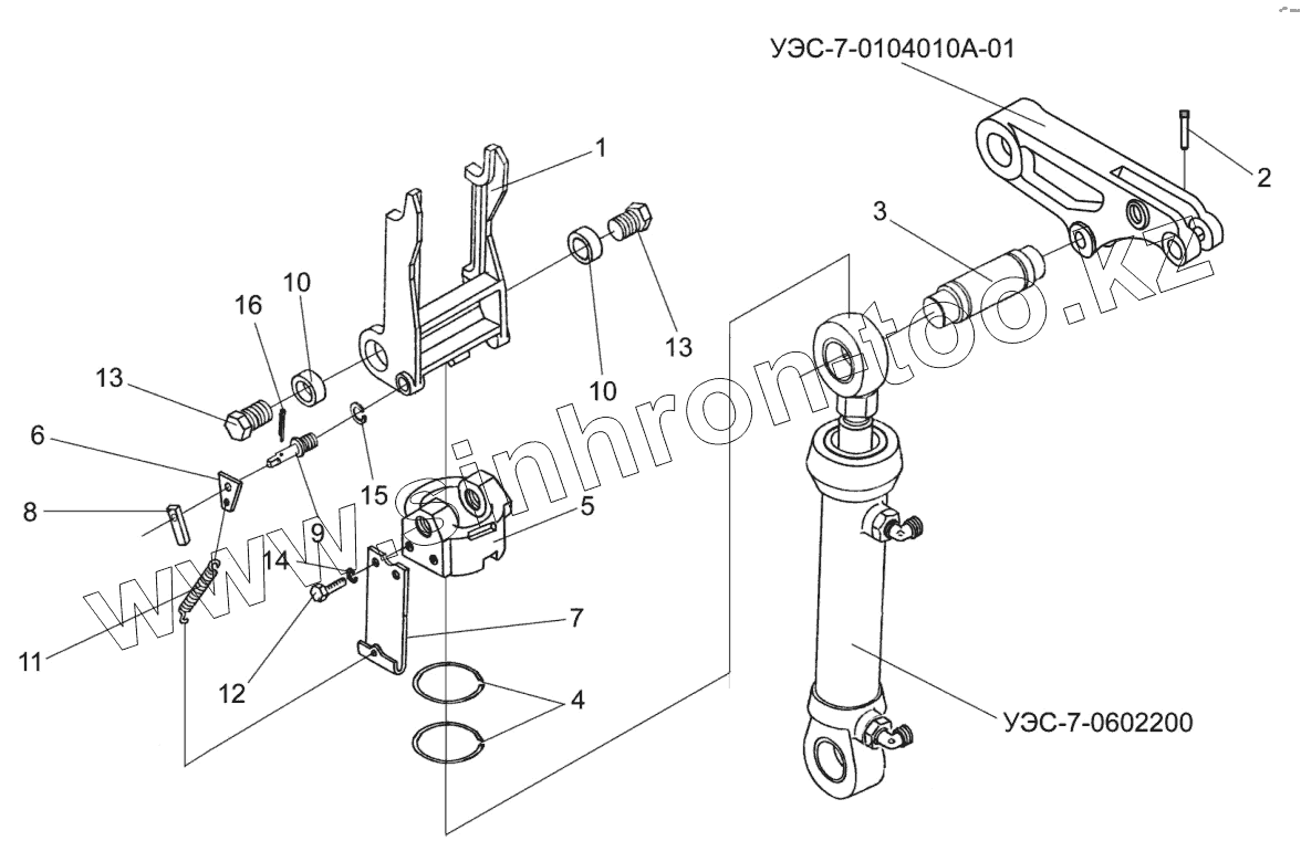 Каталог запасных частей к технике: Гомсельмаш УЭС-2-280А. Механизм фиксации УЭС-7-0104140А