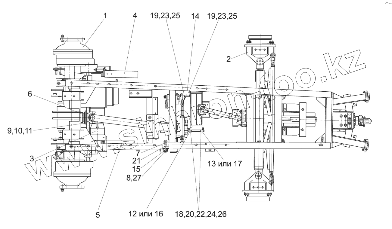 Каталог запасных частей к технике: Гомсельмаш УЭС-2-280А. Шасси УЭС-6-0100000 (вид сверху)