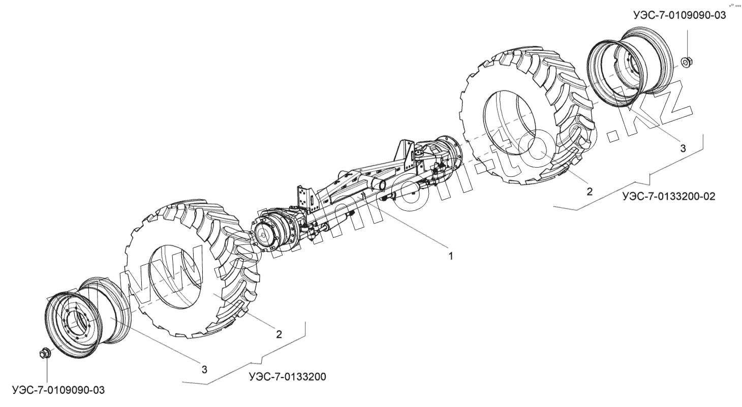 Каталог запасных частей к технике: Гомсельмаш УЭС-2-280А. Установка колес управляемого ведущего моста