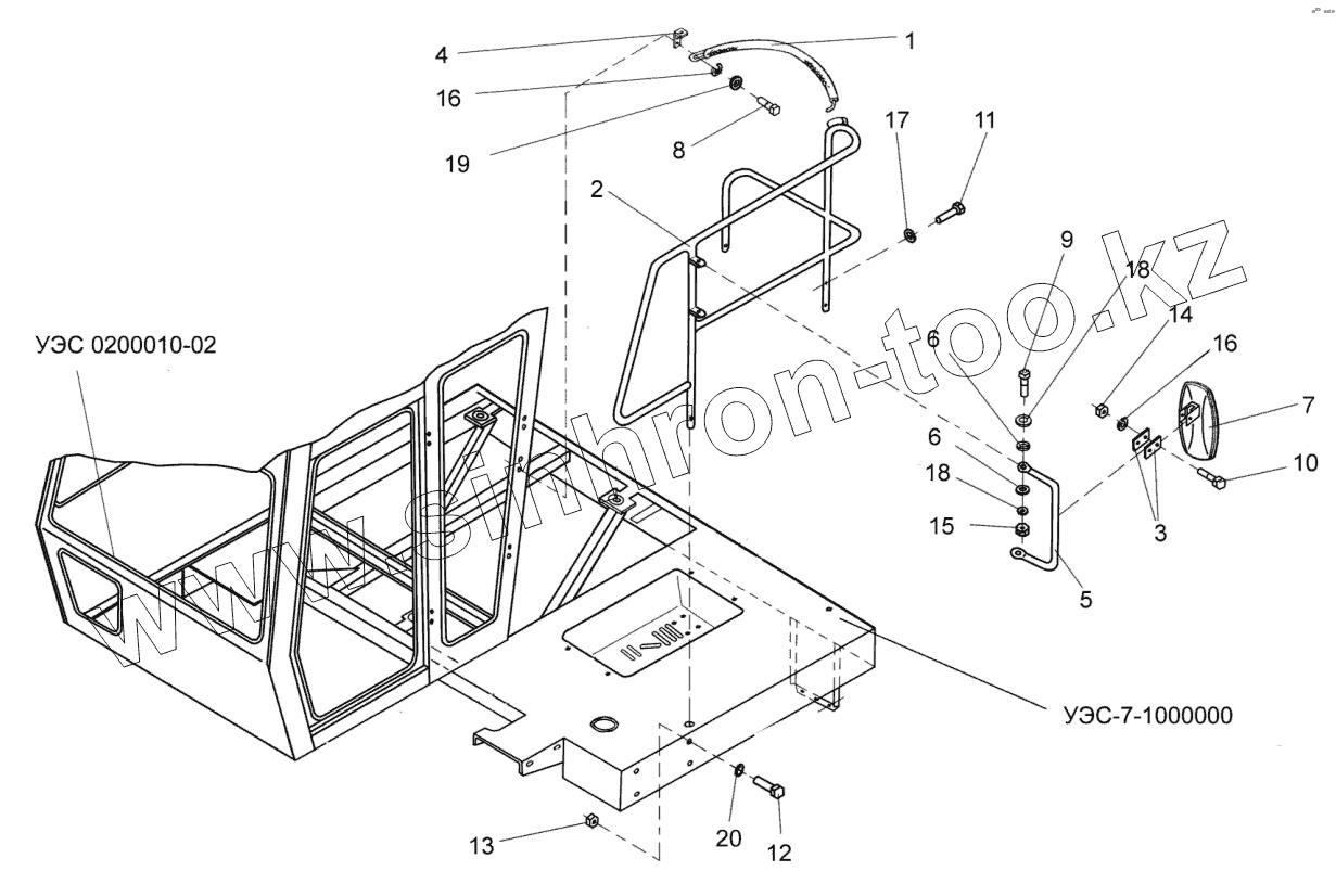 Каталог запасных частей к технике: Гомсельмаш УЭС-2-280А. Установка поручня УЭС-7-1000050