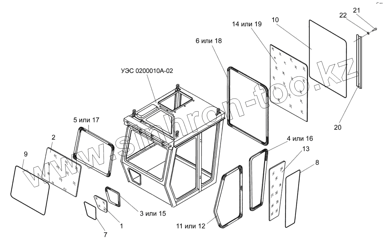Каталог запасных частей к технике: Гомсельмаш УЭС-2-280А. Установка уплотнителей и стекол кабины