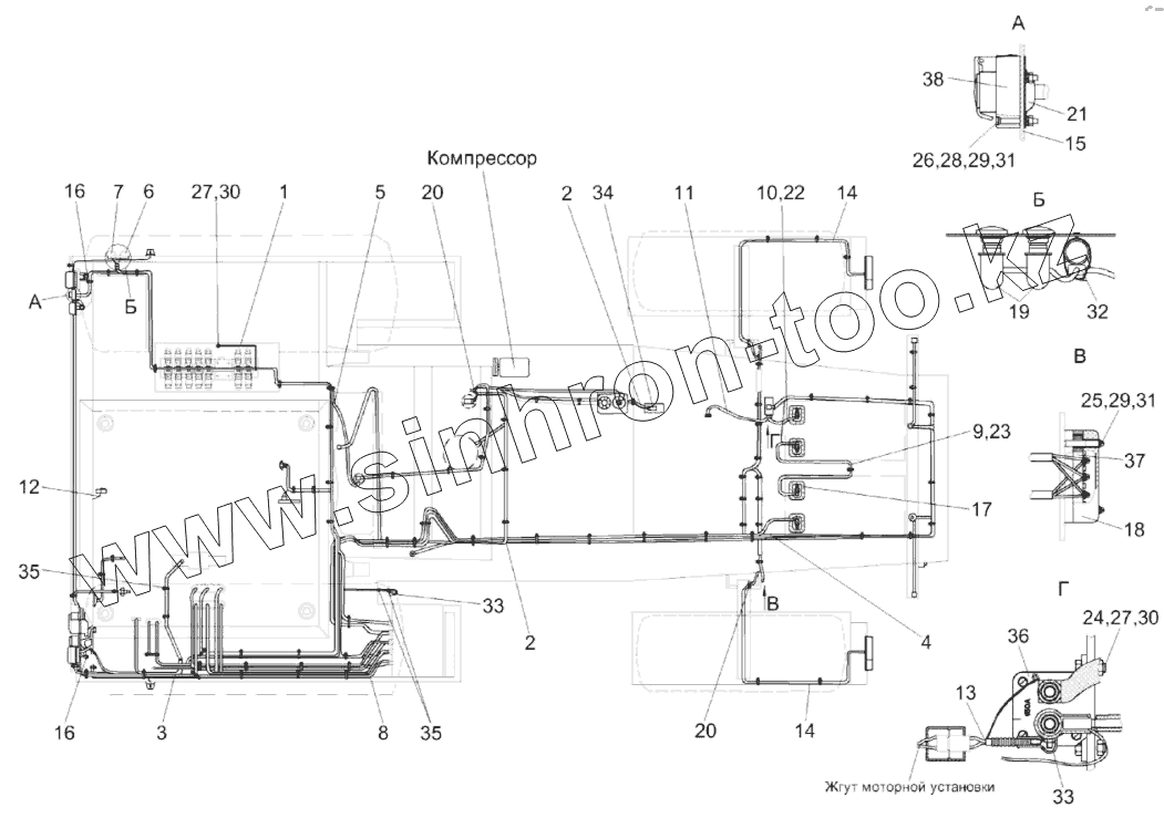 Каталог запасных частей к технике: Гомсельмаш УЭС-2-280А. Электрооборудование энергосредства (вид сверху)