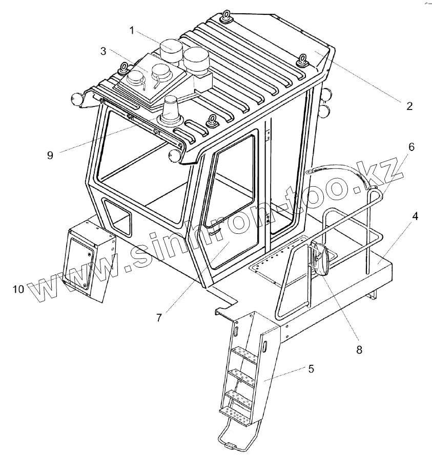 Каталог запасных частей к технике: Гомсельмаш УЭС-2-280А. Кабина УЭС-7-0200000 (общий вид)