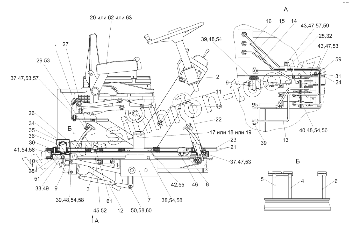 Каталог запасных частей к технике: Гомсельмаш УЭС-2-280А. Площадка управления УЭС-6-0300000 (вид сбоку