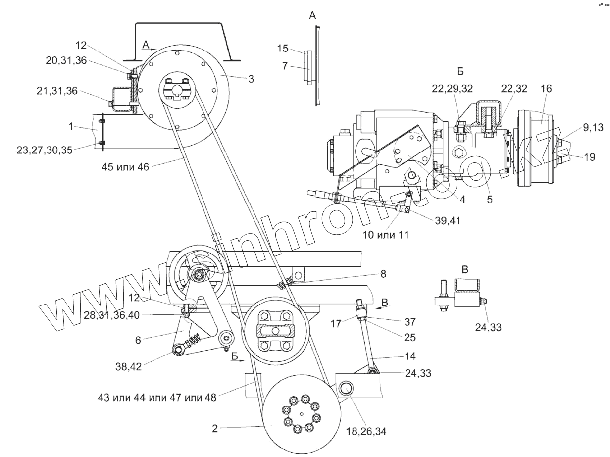 Каталог запасных частей к технике: Гомсельмаш УЭС-2-280А. Установка привода гидронасоса УЭС-7-1200000-02