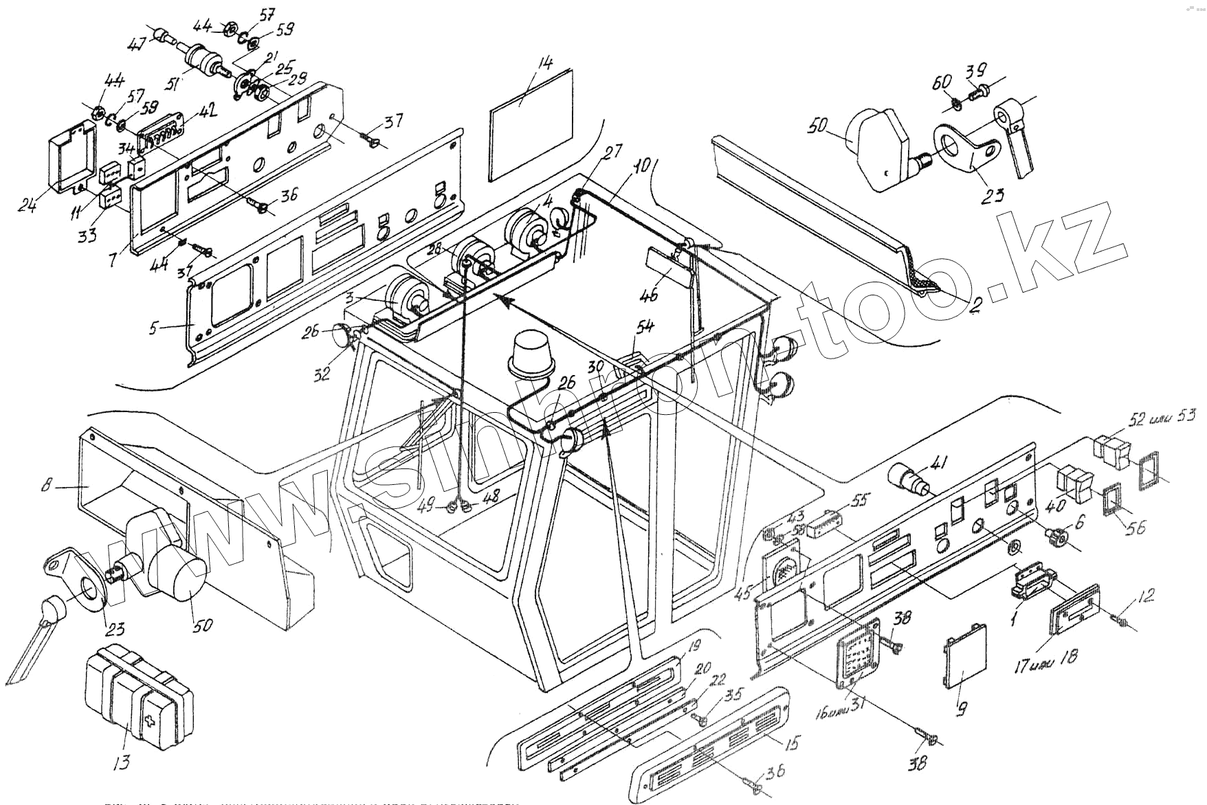 Каталог запасных частей к технике: Гомсельмаш УЭС Полесье-250. Кабина. Электрооборудование и блок выключателей