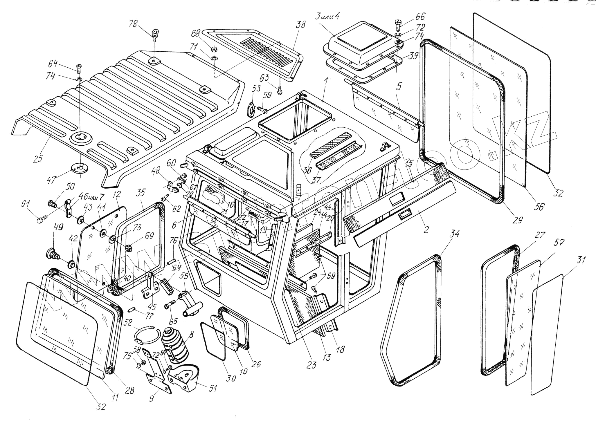 Каталог запасных частей к технике: Гомсельмаш УЭС Полесье-250. Кабина УЭС0200000