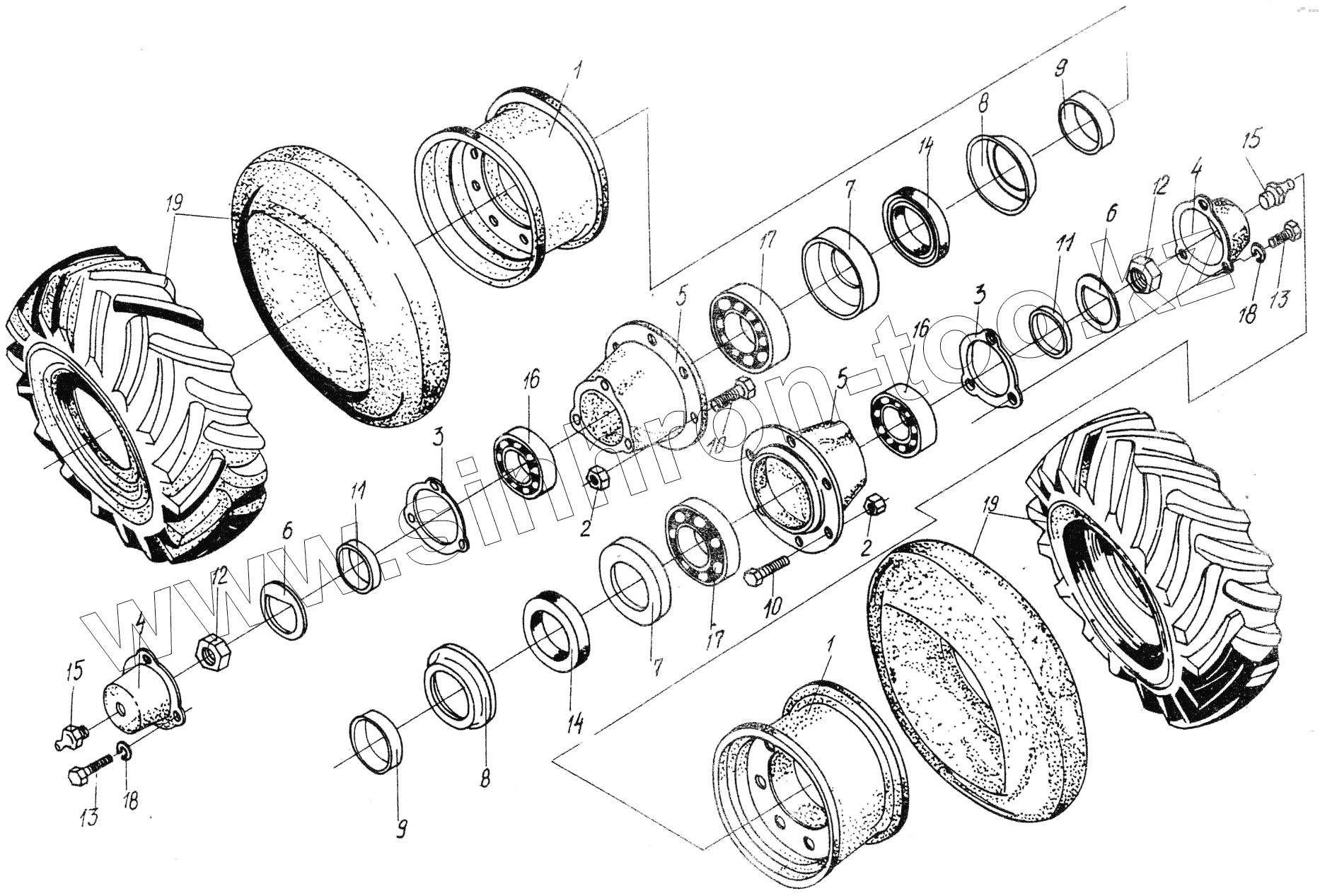 Каталог запасных частей к технике: Гомсельмаш УЭС Полесье-250. Колеса и ступицы моста управляемых колес