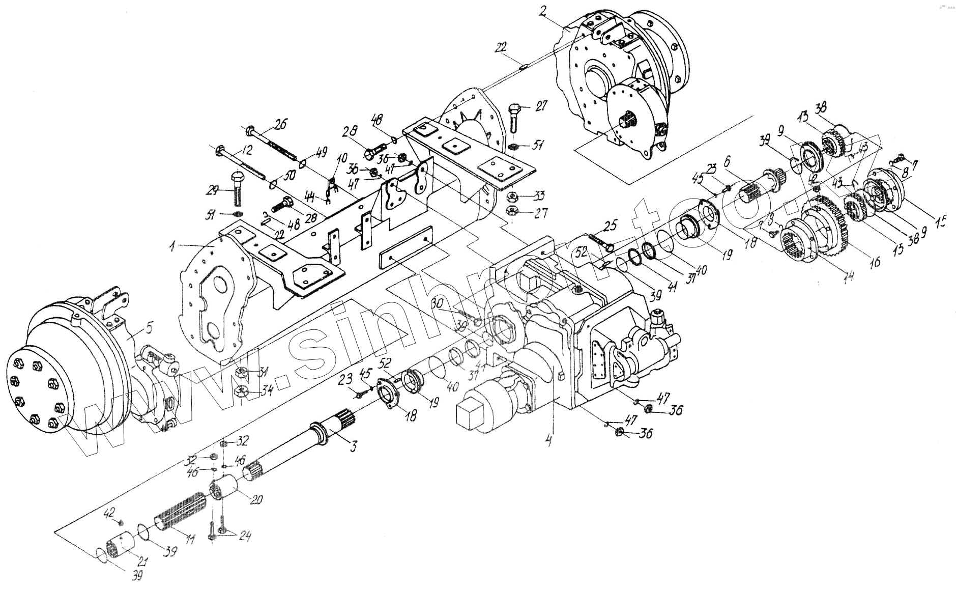 Каталог запасных частей к технике: Гомсельмаш УЭС Полесье-250. Мост ведущих колес УЭС0107000
