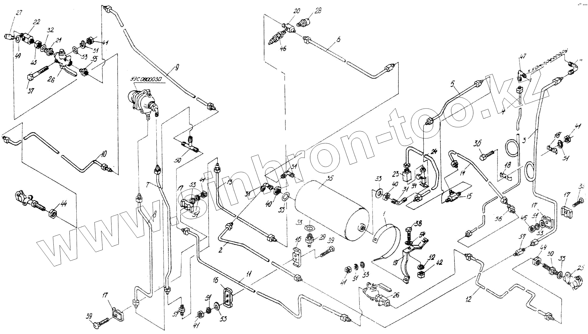 Каталог запасных частей к технике: Гомсельмаш УЭС Полесье-250. Пневмосистема УЭС0800000