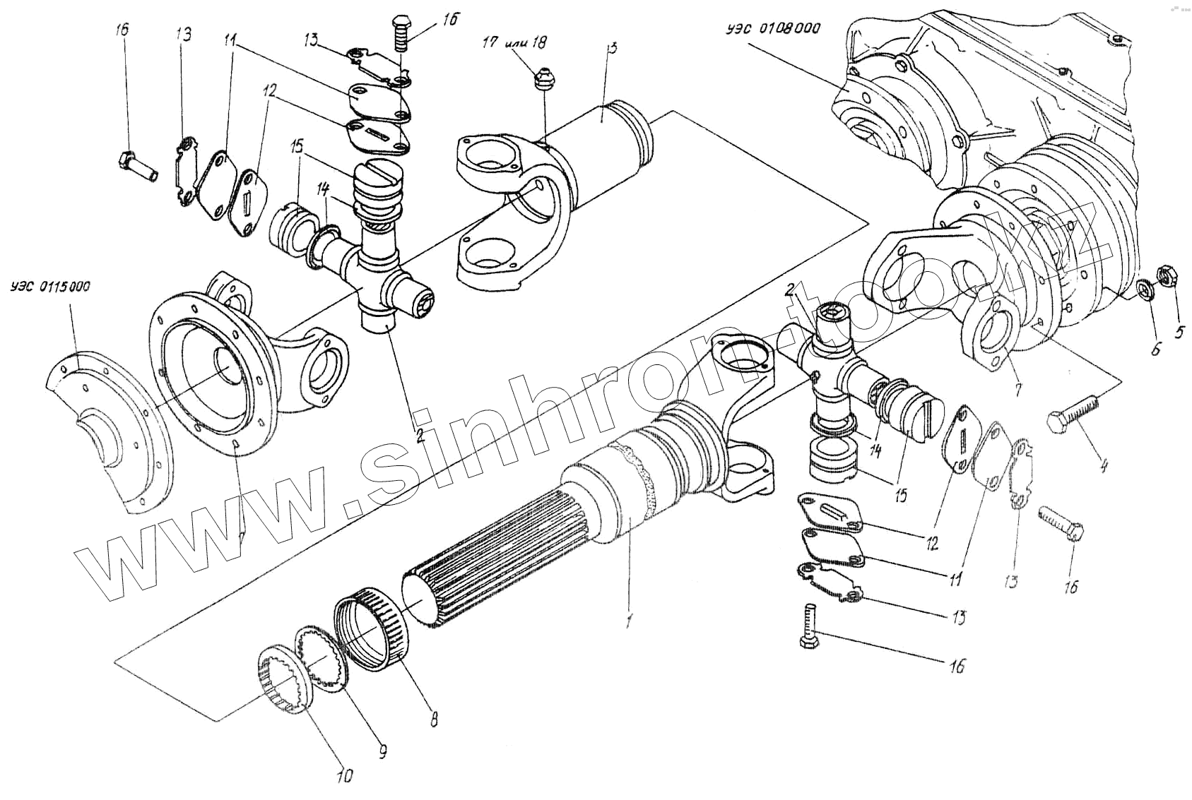 Каталог запасных частей к технике: Гомсельмаш УЭС Полесье-250. Вал карданный УЭС0105000