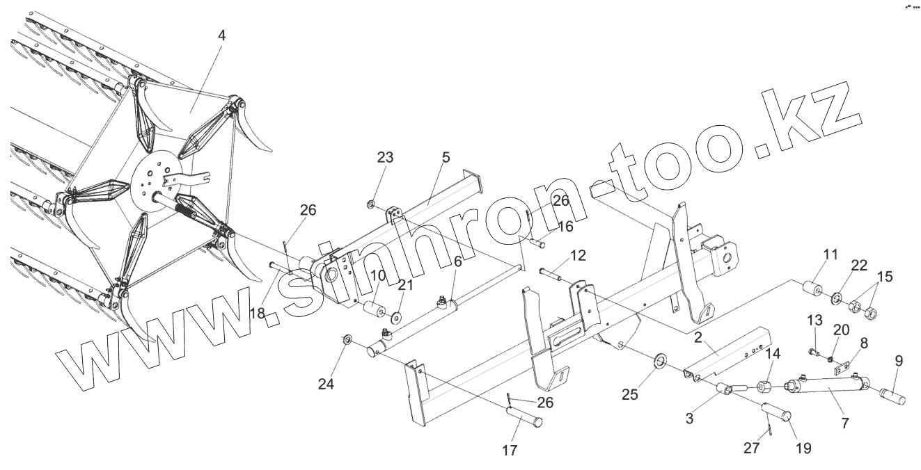Каталог запасных частей к технике: Гомсельмаш ЖЗК-7-5. Установка мотовила КЗР 1573500