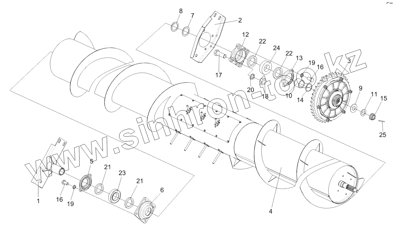 Каталог запасных частей к технике: Гомсельмаш ЖЗК-7-5. Установка шнека КЗК-12-1502000-01