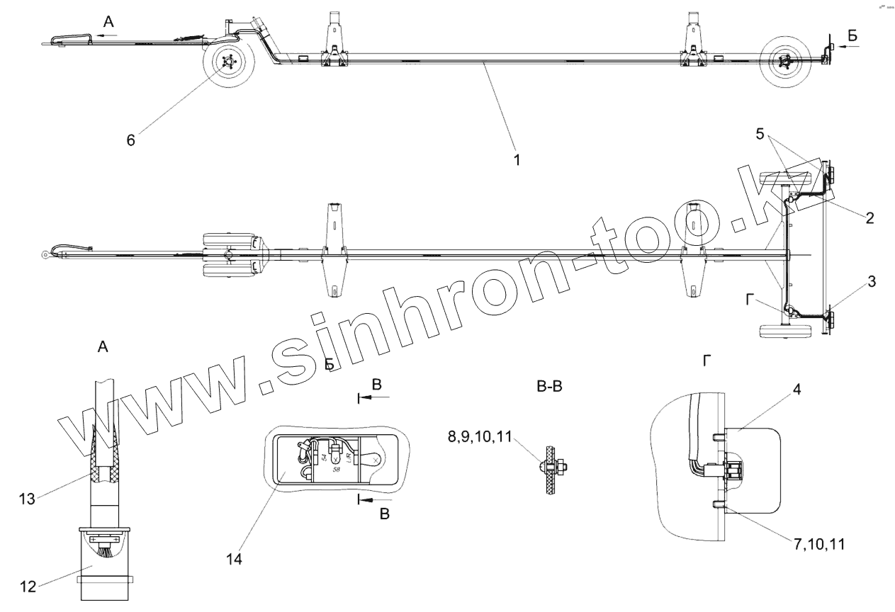 Установка лонжеронов КЗК 2594000 тележки транспортной