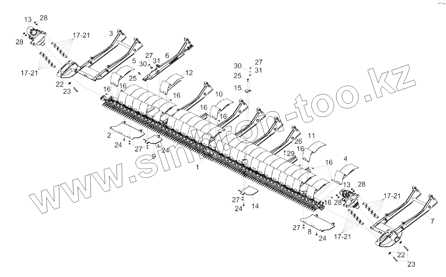 Каталог запасных частей к технике: Гомсельмаш ЖЗС-9-1. Аппарат режущий КЗК-9-1-2507300