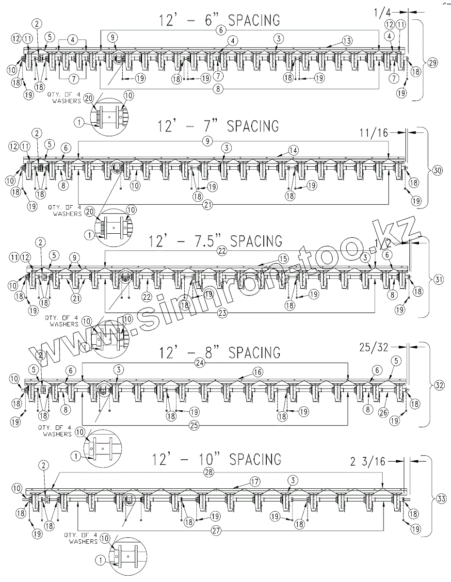 Каталог запасных частей к технике: Great Plains 1200, 1500, 2000. 1200 Drill Feeder Cup Spacing