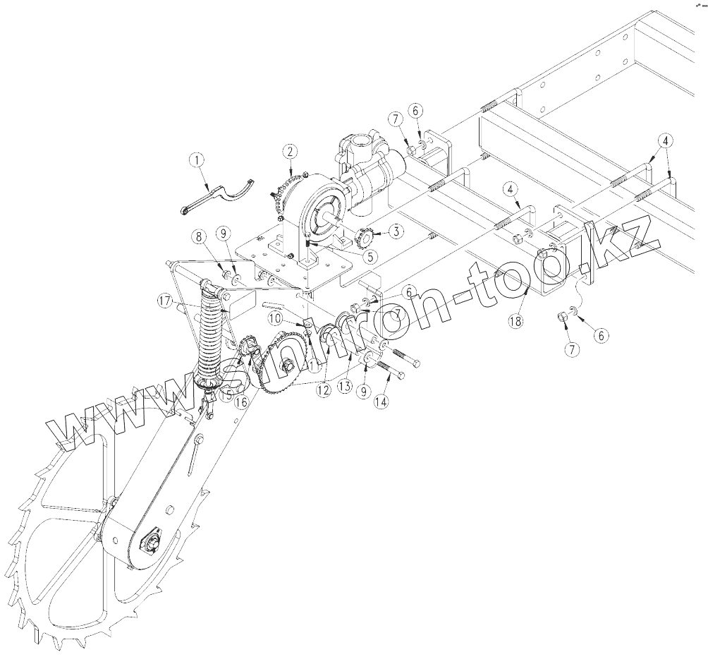 Каталог запасных частей к технике: Great Plains NP4000-1630. Fertilizer Drive Mounting