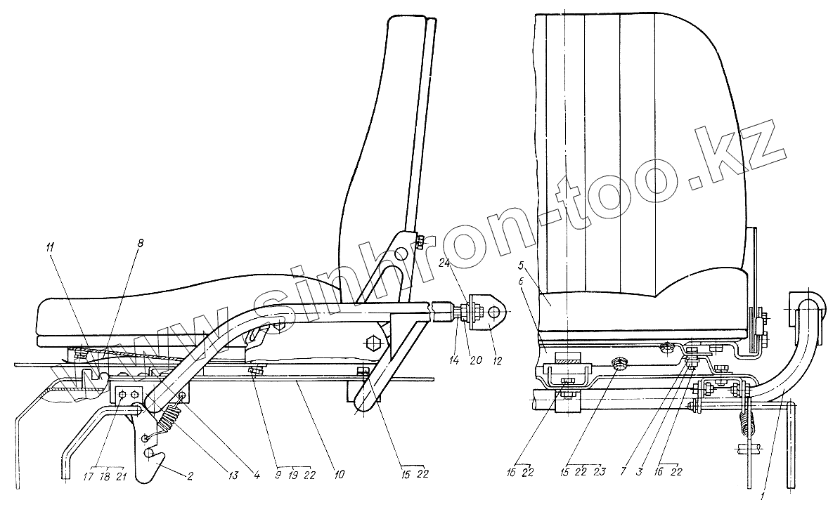 Каталог запасных частей к технике: ХТЗ Т-012. Сиденье