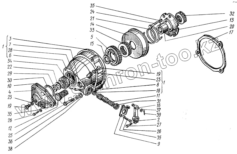 Каталог запасных частей к технике: ХТЗ Т-150. Редуктор пускового двигателя (корпус)