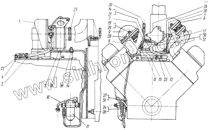 Каталог запасных частей к технике: ХТЗ Т-150. Система масляная и газовая турбокомпрессора