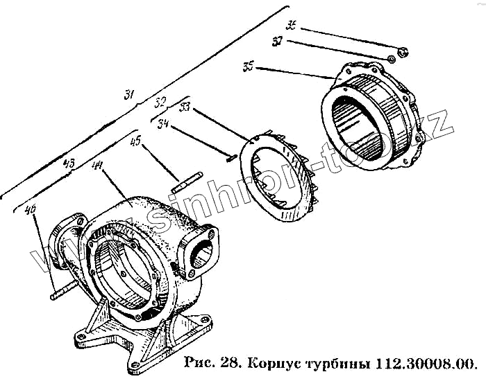 Каталог запасных частей к технике: ХТЗ Т-150К. Корпус турбины 112.30008.00