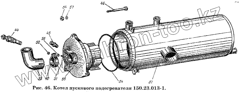 Каталог запасных частей к технике: ХТЗ Т-150К. Котел пускового подогревателя 150.23.013-1