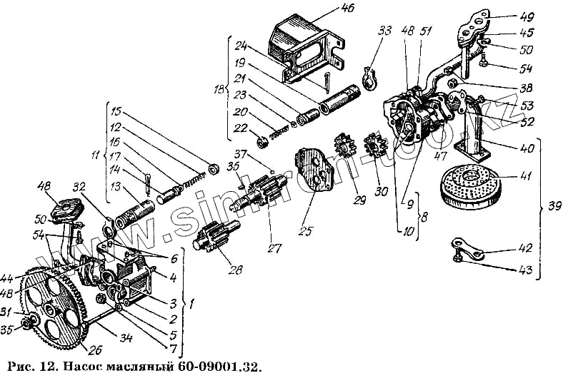 Каталог запасных частей к технике: ХТЗ Т-150К. Насос масляный 60-09001.32