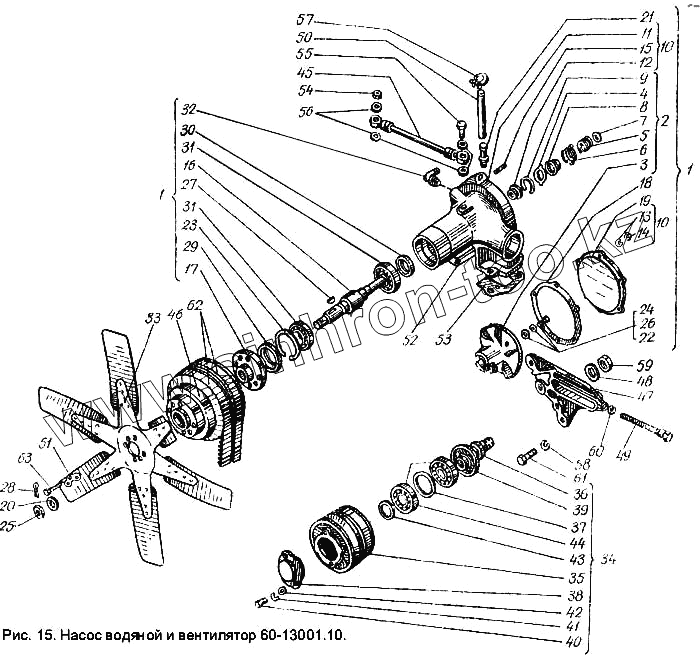 Каталог запасных частей к технике: ХТЗ Т-150К. Насос водяной и вентилятор 60-13001.10