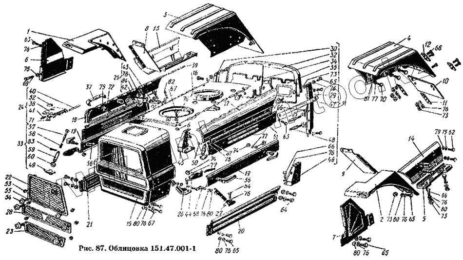 Каталог запасных частей к технике: ХТЗ Т-150К. Облицовка 151.47.001-1