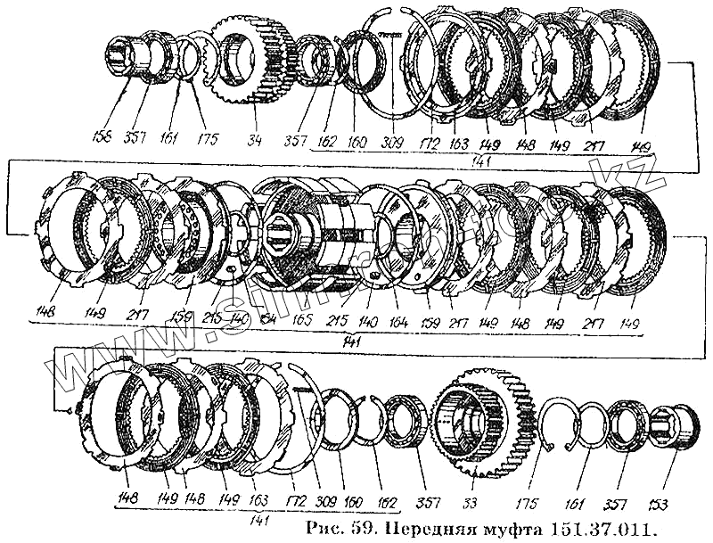 Каталог запасных частей к технике: ХТЗ Т-150К. Передняя муфта 151.37.011