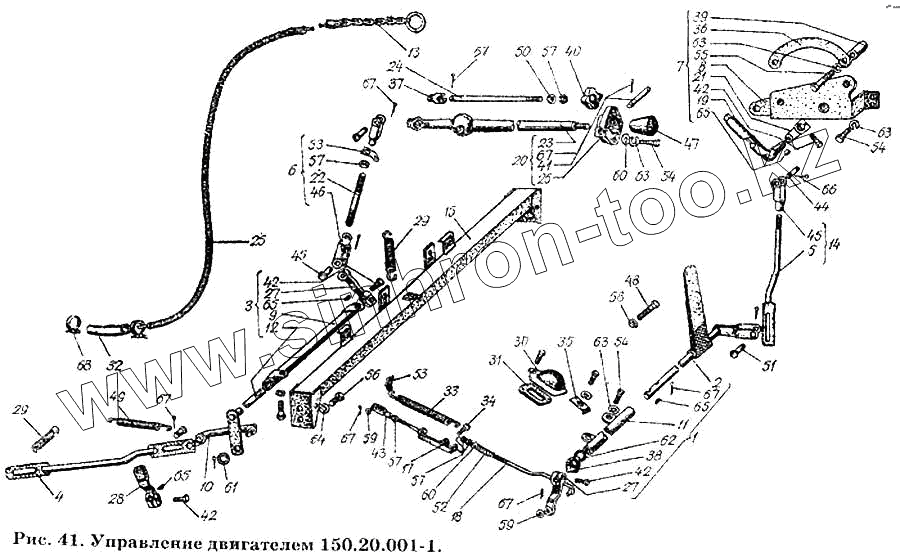 Каталог запасных частей к технике: ХТЗ Т-150К. Управление двигателем 150.20.001-1