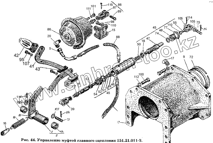 Каталог запасных частей к технике: ХТЗ Т-150К. Управление муфтой главного сцепления 151.21.011-3