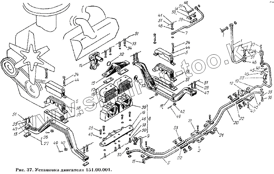 Каталог запасных частей к технике: ХТЗ Т-150К. Установка двигателя 151.00.001