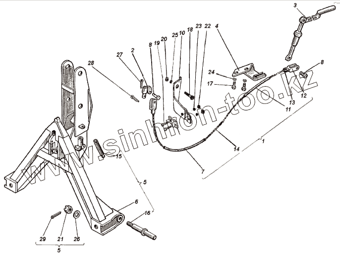 Каталог запасных частей к технике: ХТЗ Т-150К (2004). Автосцепка и механизм управления