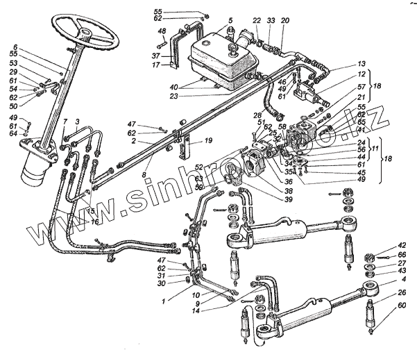 Каталог запасных частей к технике: ХТЗ Т-150К (2004). Управление рулевое