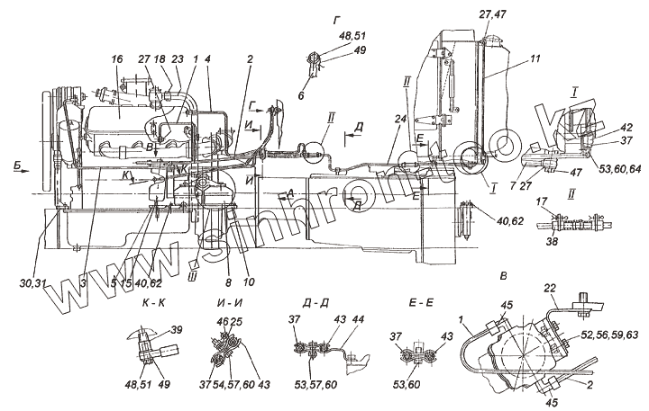 Каталог запасных частей к технике: ХТЗ Т-150К (2004). Установка двигателя