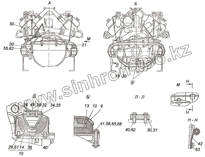 Каталог запасных частей к технике: ХТЗ Т-150К (2004). Установка двигателя