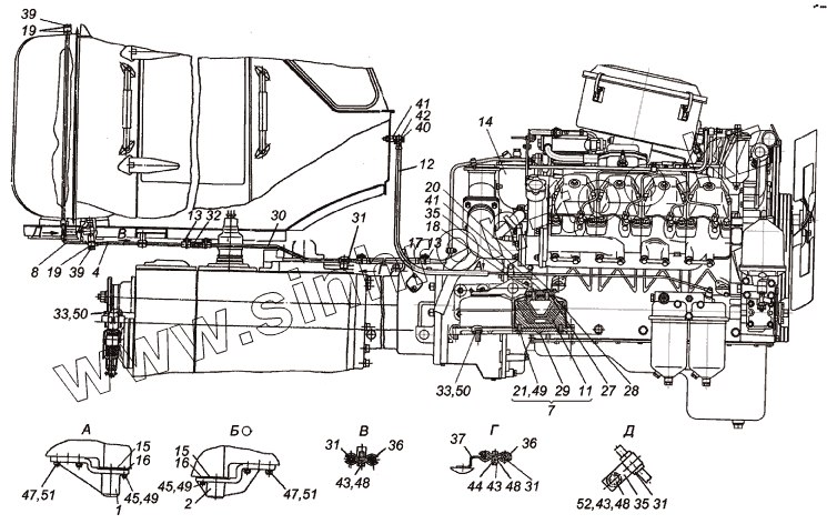 Каталог запасных частей к технике: ХТЗ Т-150К (2004). Установка двигателя