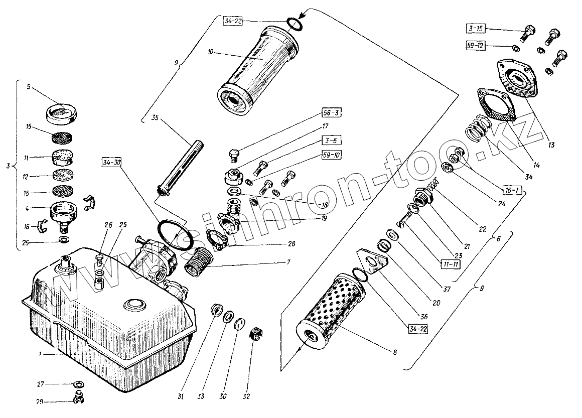Каталог запасных частей к технике: ХТЗ Т-151К-08. Бак гидравлической системы с фильтром