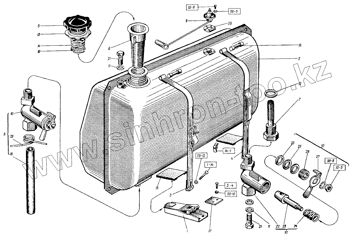 Каталог запасных частей к технике: ХТЗ Т-151К-08. Бак топливный