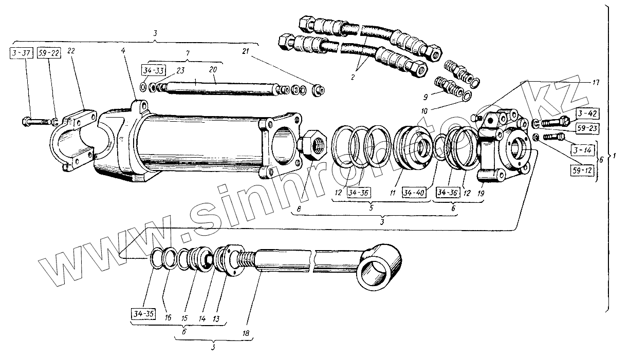 Каталог запасных частей к технике: ХТЗ Т-151К-08. Гидросистема навесного устройства. Цилиндр основной