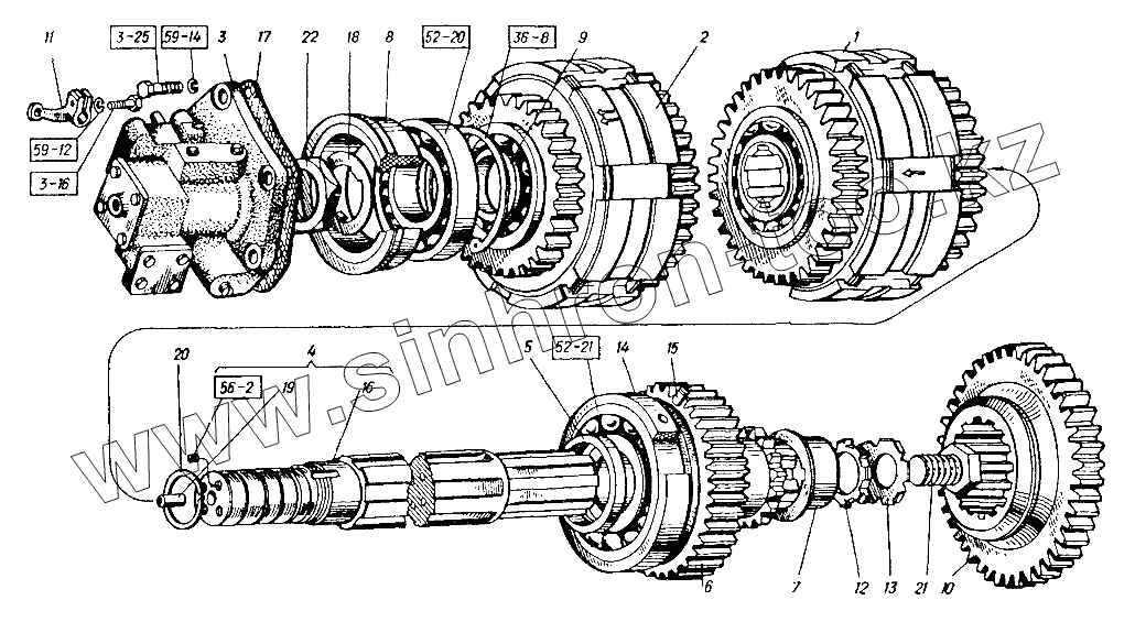 Каталог запасных частей к технике: ХТЗ Т-151К-08. Коробка передач