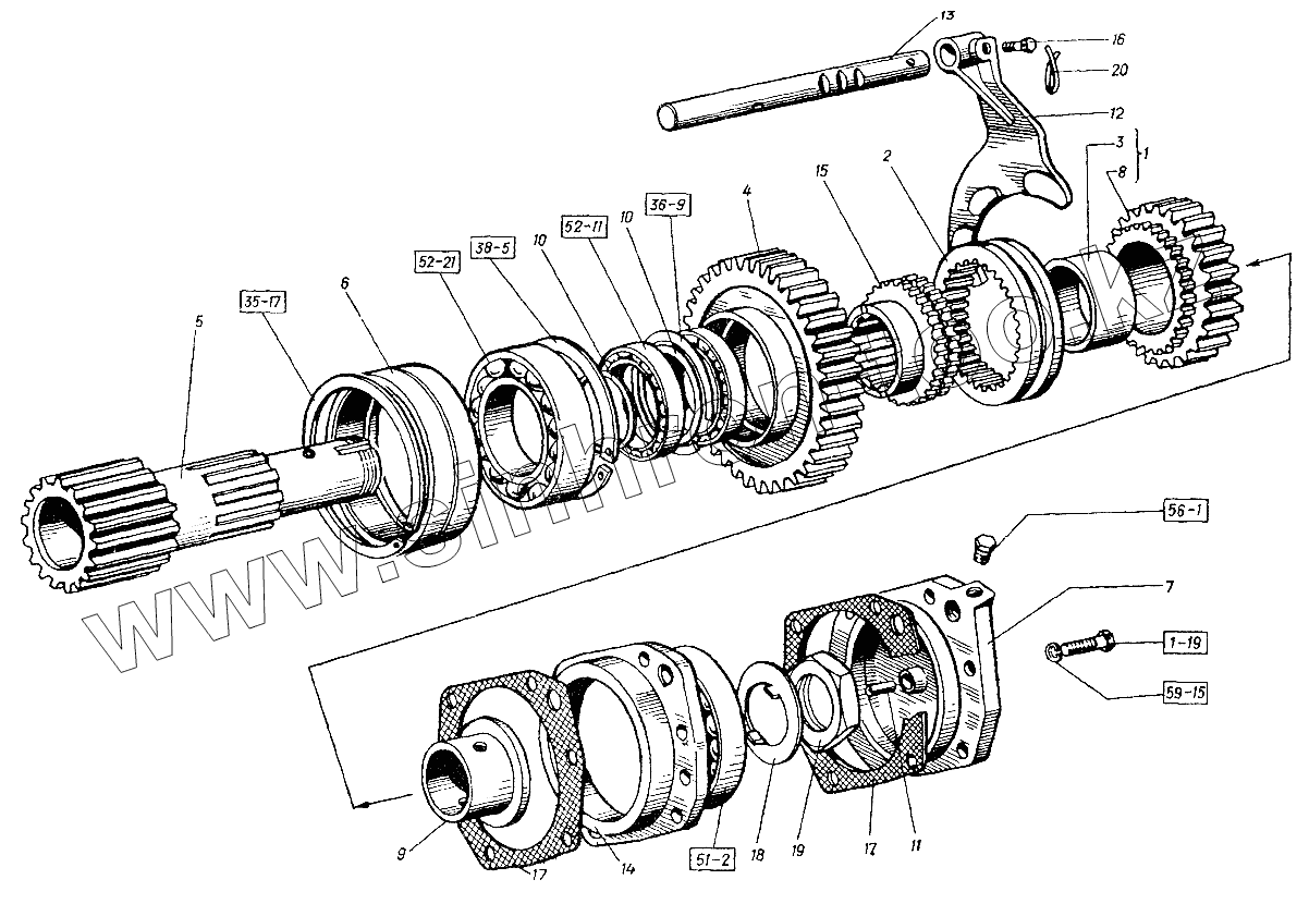 Каталог запасных частей к технике: ХТЗ Т-151К-08. Коробка раздаточная